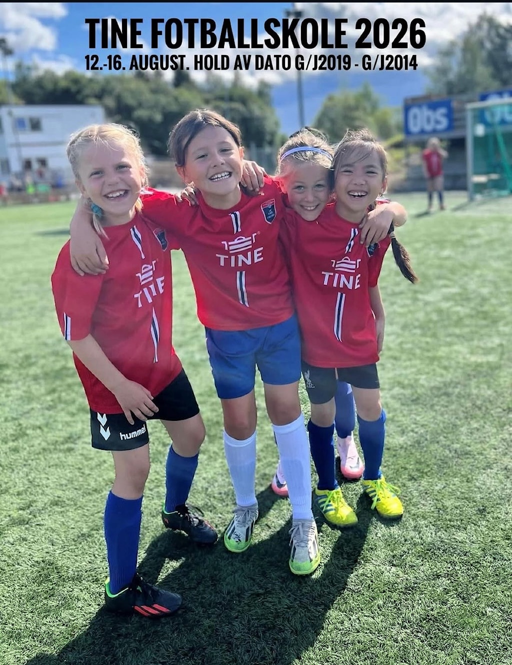 Det er bare å finne frem kalenderen og holde av datoene allerede nå! TINE Fotballskole arrangeres 12.–16. august, og vi gleder oss til en uke fylt med fotballglede, aktivitet og samhold.